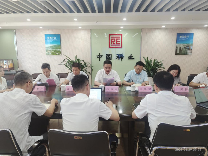 6月29日,中國稀土集團黨委副書記、董事楊國安到中國稀土股份開展主題教育專題調研并講授專題黨課。公司黨委副書記、總經理閆繩健主持,集團黨委主題教育第三巡回指導組成員、公司黨政領導班子成員出席。